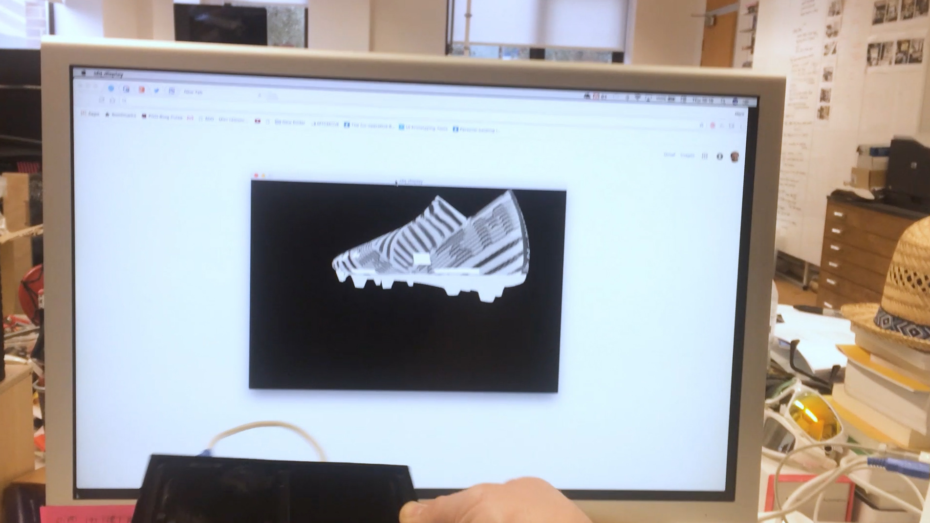 Working with our design partners at Imagination Factory, prototype boots were designed to encase a range of sensors that would respond to the users’ actions. Digital art studio Kuva developed a realtime animation system that would allow the sensor data to generate the visuals in response to the physical manipulations of the boot.
