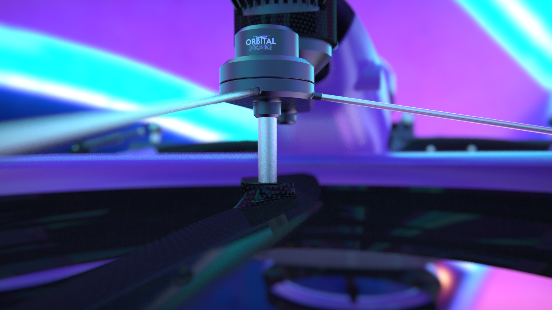 I took an off the shelf drone model, put together a quick logo for a made up drone company called Orbital Drones and applied some branding.