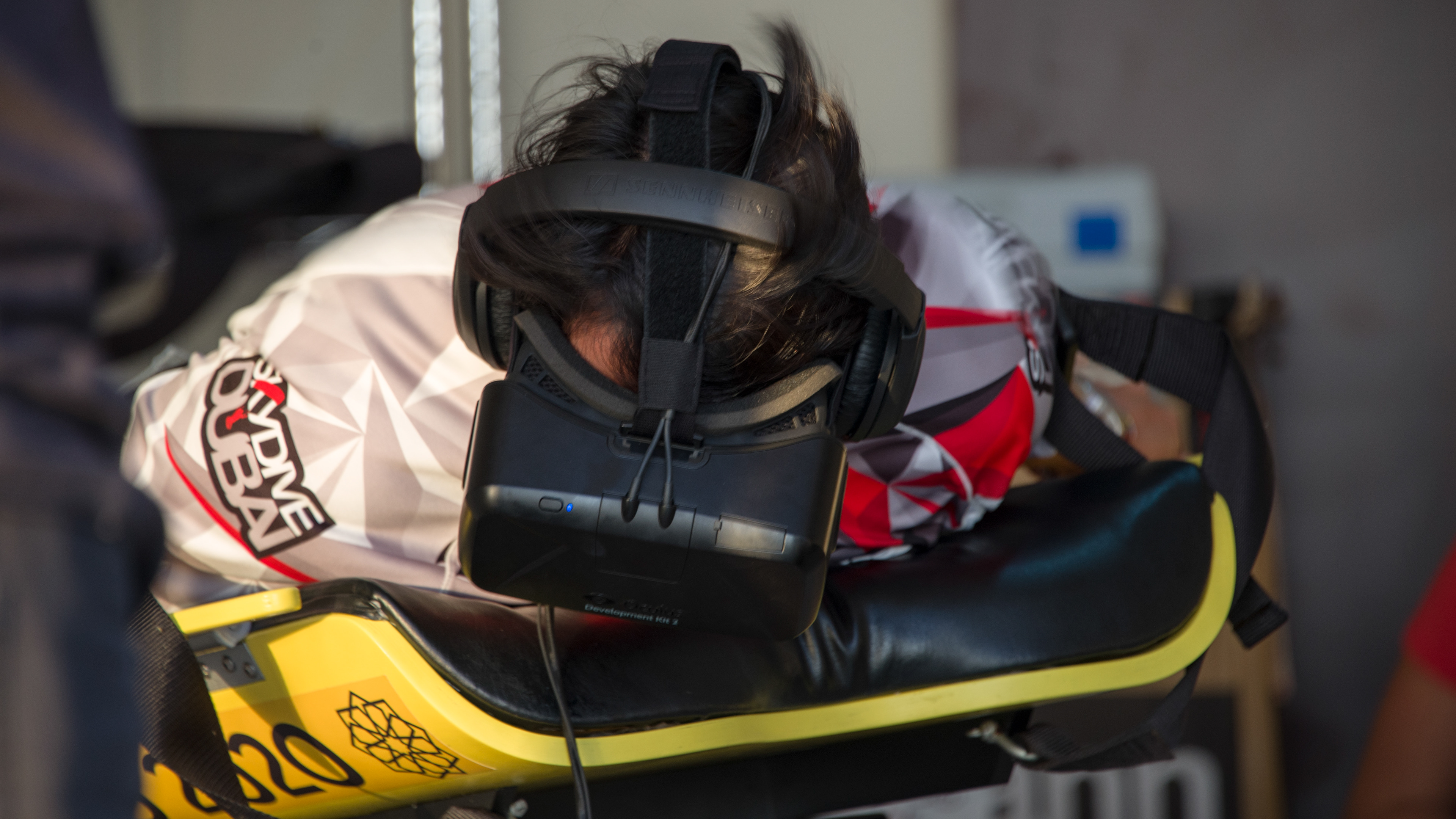 Using footage obtained from a skydivers helmet cam, a motion base and a fan, users were literally screaming with fear.